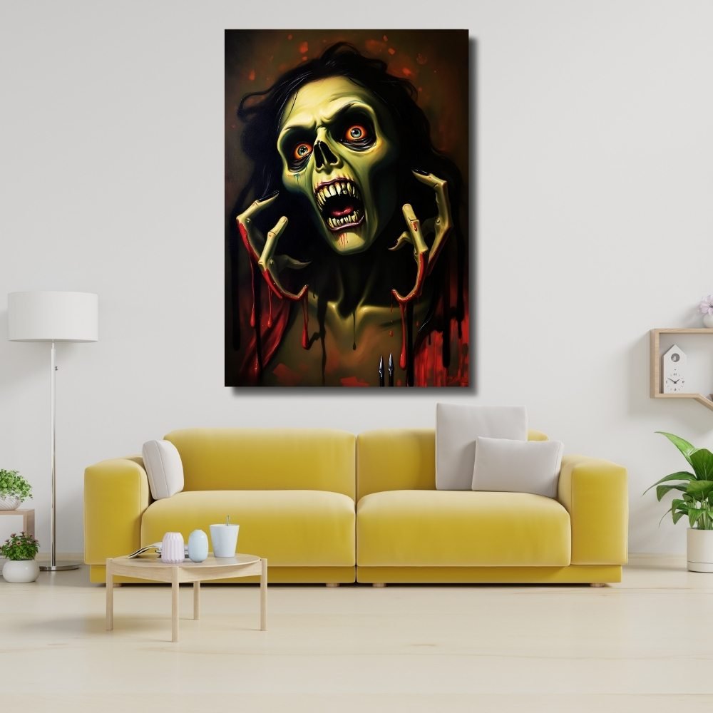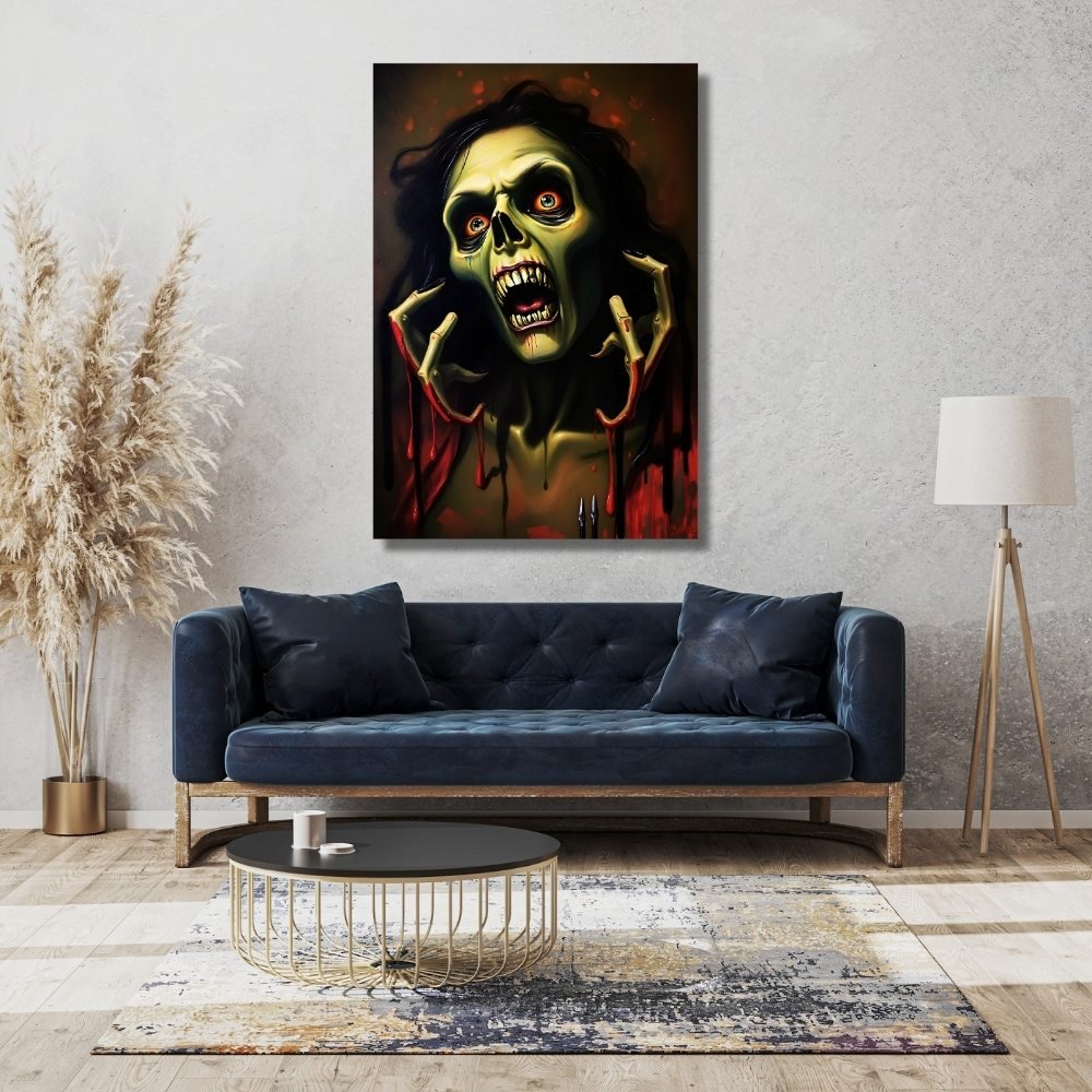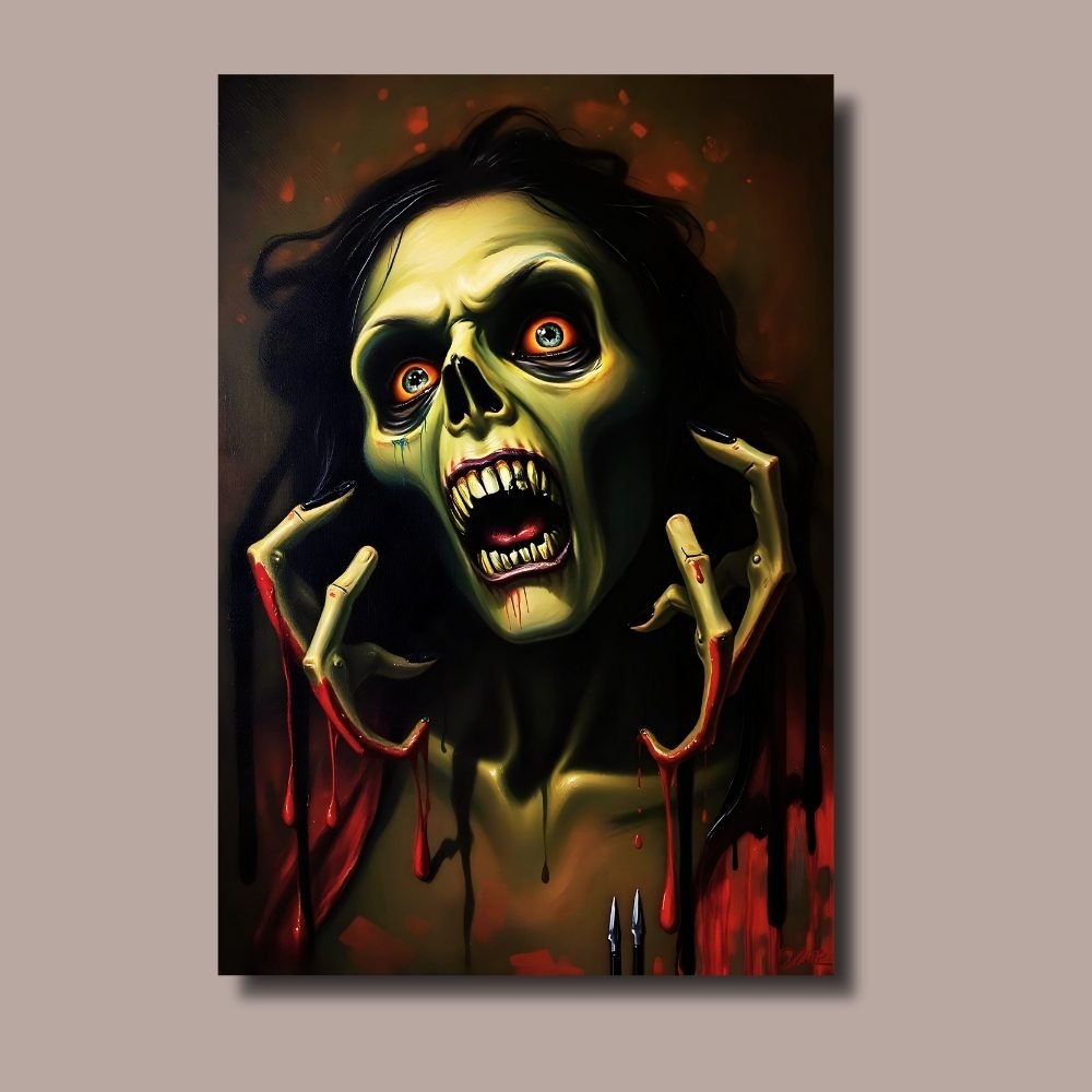 Ideal for horror-themed spaces, gaming rooms, or as a bold statement piece, this artwork creates an atmosphere of dark intrigue. It also makes a unique and thought-provoking gift for fans of the macabre and the mysterious.